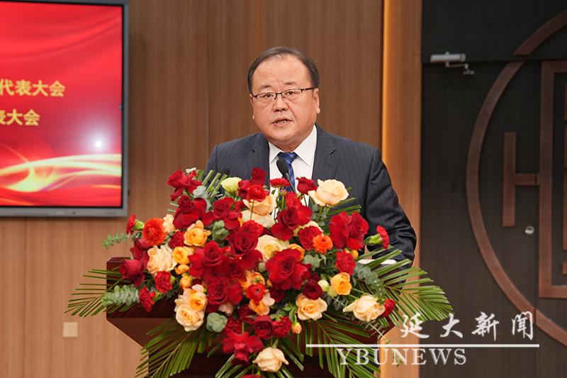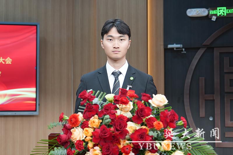 校工会主席黄润浩代表群团组织致辞。他寄语延大青年要坚定听党话、跟党走的政治信念,以铸牢中华民族共同体意识为主线,扎实学好理论知识,积极投身实践锻炼,踔厉奋发、勇毅前行,成为各个领域中的先锋力量,以青春之笔书写波澜壮阔的时代答卷。