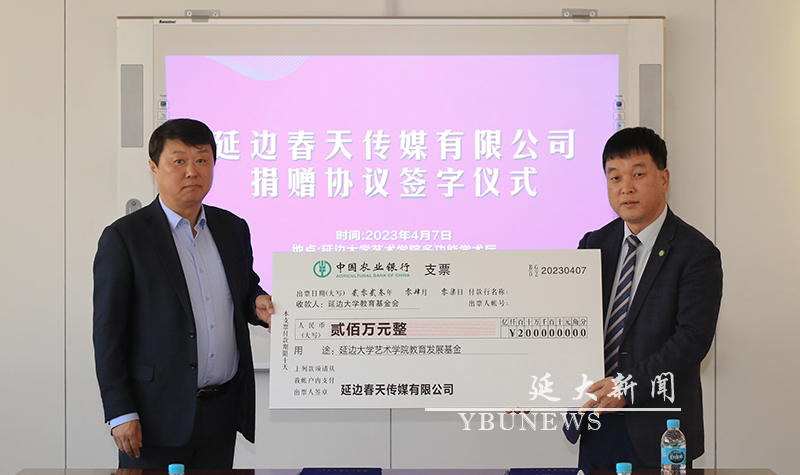 (通讯员何鑫)4月7日下午,伟德在艺术学院多功能学术厅举行延边春天传媒有限公司捐赠仪式。学校校友、捐赠人、延边春天文旅集团董事长李勋,副校长张学武出席仪式。