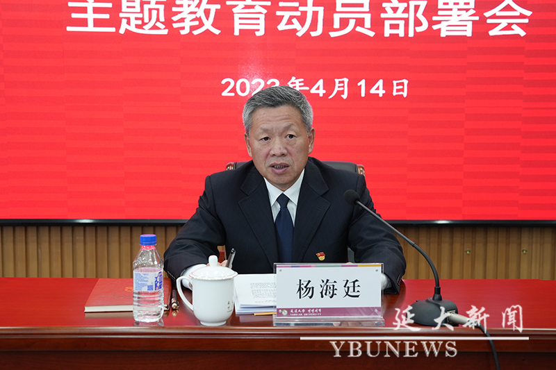 杨海廷围绕学习贯彻习近平总书记重要讲话精神和党中央、省委决策部署要求,结合省委巡回指导组的职责任务,就落实主题教育各项任务提出五点要求:一要提高政治站位,深刻认识重大意义。深刻认识开展主题教育的重大政治意义、理论意义和实践意义,教育引导广大党员、干部把思想和行动统一到习近平总书记重要讲话精神上来,深刻领悟“两个确立”的决定性意义,增强“四个意识”、坚定“四个自信”、做到“两个维护”,努力在贯彻落实习近平总书记重要讲话和重要指示批示精神上取得新进展、新成效;二要牢牢把握总要求,精心谋划推进工作。深入领会、准确把握“学思想、强党性、重实践、建新功”的总要求,把开展主题教育与围绕中心、服务大局结合起来,围绕履行党中央赋予的职责任务找差距、抓落实,为推动经济社会发展、完成中心任务、全面建设社会主义现代化新吉林提供强大动力;三要紧盯根本任务,推动主题教育走深走实。开展主题教育,要把深入学习贯彻习近平新时代中国特色社会主义思想这一根本任务作为主线,一切工作安排、一切推进措施、一切工作要求,都要围绕这一主线展开,推动广大党员、干部真学真懂真信真用,在贯彻落实上取得新进展、新成效;四要围绕具体目标,着力解决突出问题。要深刻认识具体目标的丰富内涵,准确把握党对新时代党员、干部在政治、思想、作风、能力、廉洁方面的基本要求,在制定措施、推动落实的过程中自觉对标对表、及时校准偏差,确保主题教育不变形、不走样、有实效;五要贯通重点措施,一体推进任务落实。把理论学习、调查研究、推动发展、检视整改、建章立制贯通起来,深刻理解、准确把握蕴含其中的习近平新时代中国特色社会主义思想的世界观和方法论,突出重点、抓住关键,统筹兼顾、整体推进,努力把每项工作都做扎实、做到位。