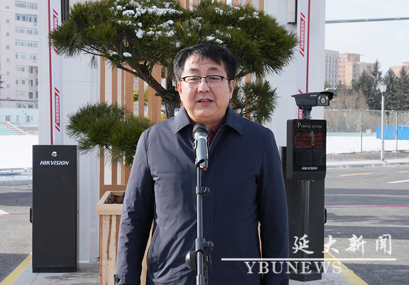 东门通车仪式由学校党政办公室主任王国梁主持。校党委常委、宣传部·教师工作部部长王洪国,学校和吉林省弘方建设集团有限公司相关负责人参加仪式。