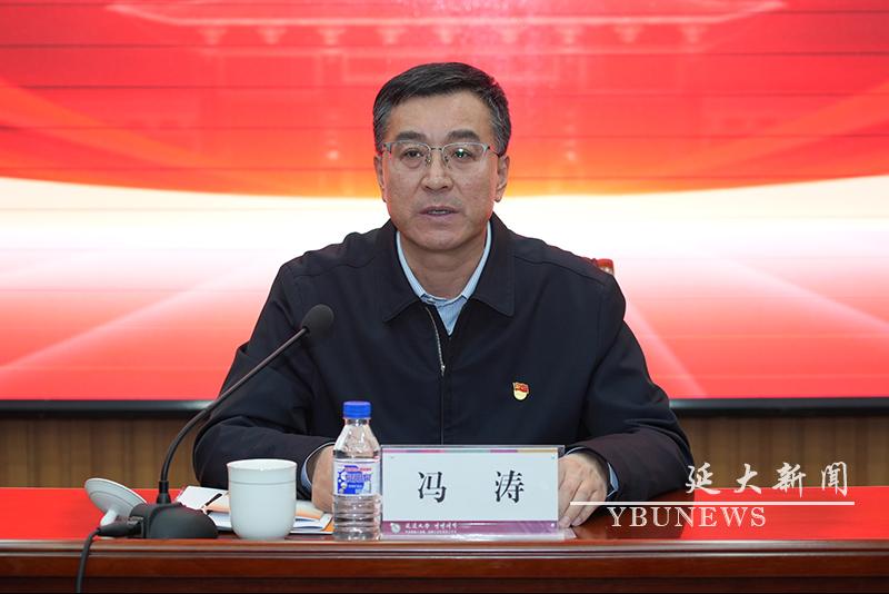 冯涛在会上讲话。他表示,此次会议旨在深入学习贯彻党的二十大精神和习近平总书记关于做好新时代党的统一战线工作的重要思想,对当前和今后一段时期学校统战工作进行研究落实。他要求,全校上下要深刻认识、正确把握铸牢中华民族共同体意识的重大意义,要立场坚定、旗帜鲜明地把铸牢中华民族共同体意识作为全校各项工作的主线,要凝心聚力、团结一致以构建大统战工作格局助推学校事业高质量发展。他强调,做好新时代学校统战工作使命光荣、责任重大,全体延大人要更加紧密地团结在以习近平同志为核心的党中央周围,以铸牢中华民族共同体意识为主线,以立德树人为根本任务,以推进学校事业高质量发展为目标,以高度的政治担当、责任担当、事业担当,切实将工作落到实处。要做到认真传达贯彻会议精神,进一步细化举措、分解任务、压实责任,全面汇聚工作合力,推动学校事业高质量发展再上新的台阶。