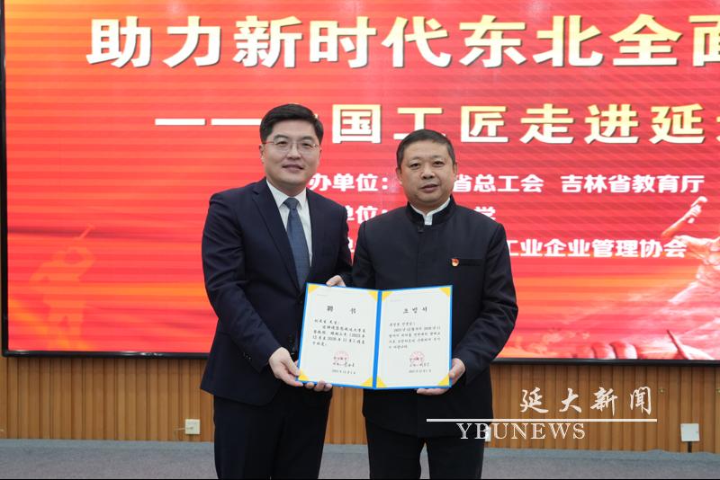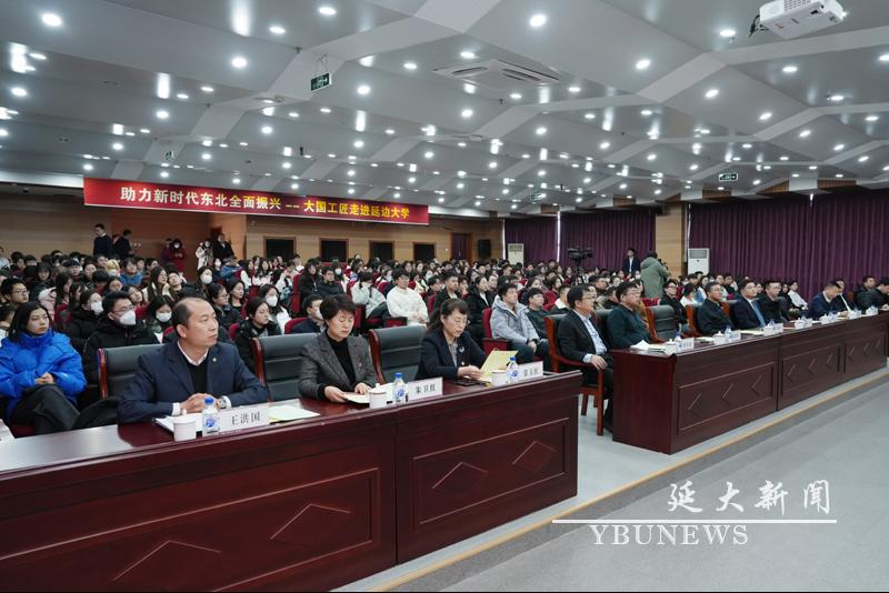 校党委书记冯涛致辞。他表示,开展“大国工匠进校园”活动是深入学习习近平新时代中国特色社会主义思想,贯彻落实党的二十大精神,大力弘扬劳模精神、工匠精神的重要举措,对进一步丰富育人内涵,涵养大学生求实创新、精益求精的态度与品质,为实现中华民族伟大复兴提供有力的人才保障具有重要意义。希望广大师生珍惜这次宝贵机会,从大国工匠的先进事迹中有所思、有所悟,感受工匠故事“润物无声”的力量,切实将执着专注、精益求精、一丝不苟、追求卓越的工匠精神融入日常学习生活中,熔炼匠心、塑造匠魂,向下扎根、向上成林,努力成为自身领域的佼佼者,立足岗位做贡献,为国家的建设发展添砖加瓦、加油助力。学校将以本次活动为契机,在省总工会、省教育厅的指导和帮助下,不断拓展活动渠道、丰富活动内容,定期开展相关活动,形成春风化雨的育人效果,真正让工匠精神在校园落地生根,培养更多堪当民族复兴大任的时代新人,为强国建设贡献延大智慧和力量。