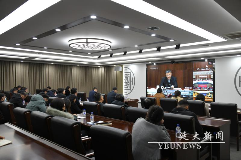 学校相关职能部门负责人,各学院党委书记、院长和副书记在分会场参加了视频会议。