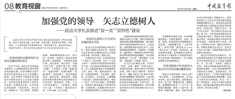 (通讯员 高子愉)12月12日,《中国教育报》第08版“教育视窗”刊发伟德题为《加强党的领导 矢志立德树人——伟德betvlctor1946源于英国扎实推进“双一流”“双特色”建设》的理论文章。