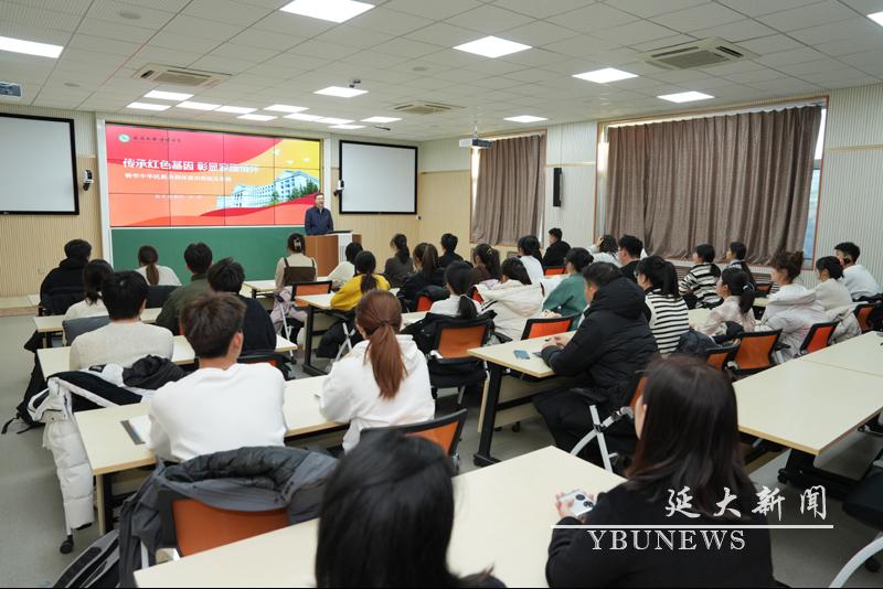课堂上,冯涛从地理位置、生态特点、民族文化和发展潜力四个方面对延边朝鲜族自治州的综合情况进行了精彩讲述。他说,延边朝鲜族自治州成立71年来,不断铸牢中华民族共同体意识,各族人民团结奋斗,共谋发展,各项事业取得了长足进步,正奋力书写全面建设社会主义现代化新延边的辉煌篇章。他强调,“山山金达莱,村村烈士碑”,是著名诗人贺敬之对延边红色精神的高度概括,延边各族儿女在中国共产党的领导下,为抵御外敌做出了不可磨灭的重大贡献,留下了众多革命遗址遗迹,成为今日延边永不褪色的一张靓丽红色名片,形成了“三红两地一校一前沿”的延边“红色地标”。全体延大人要深入贯彻落实习近平总书记关于用好红色资源的重要讲话精神,进一步把红色资源利用好、把红色传统发扬好、把红色基因传承好,努力汲取新时代坚定理想信念、努力奋进前行的精神力量。