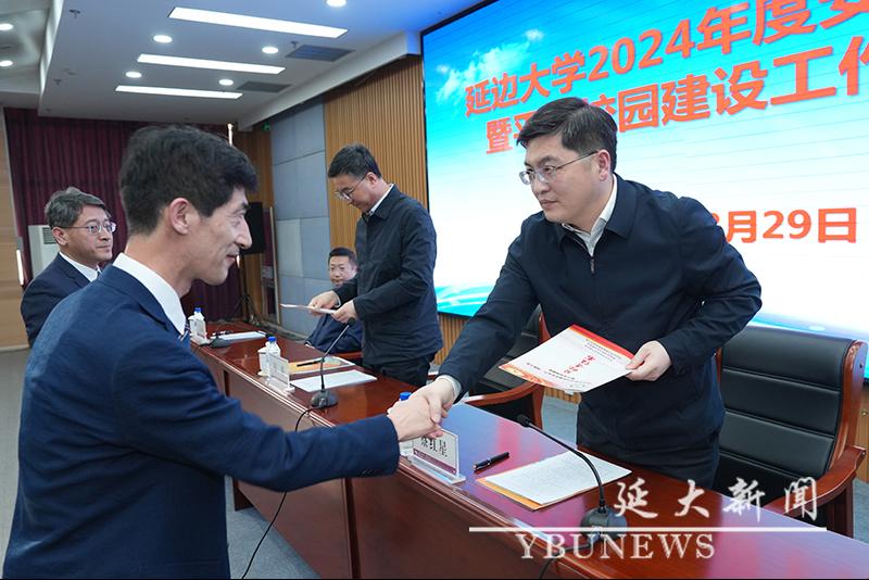 与会人员观看了安全生产警示片,安全保卫处处长朴明吉对学校2023年度安全稳定暨平安校园建设工作考核情况进行了通报,农学院、经济管理学院、图书馆、附属医院代表学院和部门向冯涛、蔡红星提交了《伟德betvlctor1946源于英国2024年度安全生产、消防工作暨平安校园建设目标责任书》。