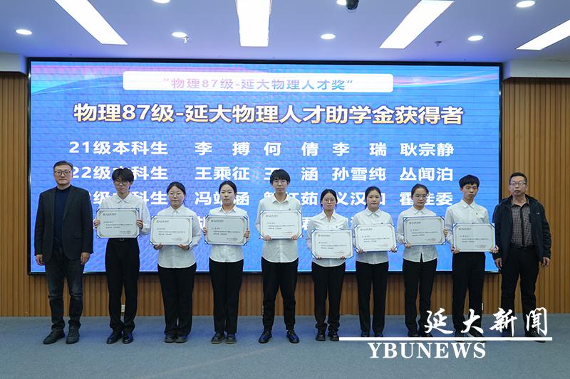 大会举行颁奖仪式,16名本科生、6名研究生获得“物理87级-延大物理人才奖”助学金,35名学生获得“物理87级-延大物理人才奖”优秀奖;对物理学科发展有贡献的16名优秀教师获得“姜维利&李琪物理学奖”;与会领导、嘉宾、校友代表等分别为获奖代表颁奖。获奖教师代表管思雨、获奖学生代表孙雪纯先后发言。