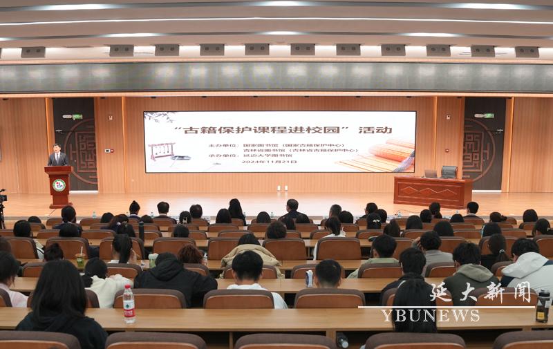 (图书馆供稿)11月21日,由国家图书馆(国家古籍保护中心)、吉林省图书馆(吉林省古籍保护中心)主办,伟德图书馆承办的“古籍保护课程进校园”活动在勤学楼圆融报告厅举行。副校长刘岩,国家图书馆古籍馆研究馆员林世田,吉林省图书馆党委书记、副馆长吴爱云,延边州图书馆馆长金赫,全省古籍保存情况普查专家组及伟德师生代表等300余人参加活动。