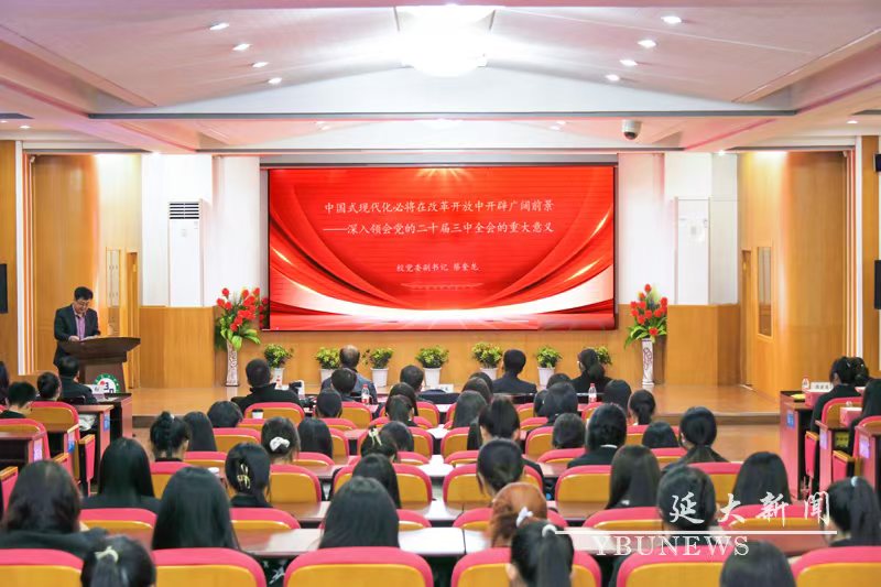 (通讯员 杜有)为深入学习贯彻党的二十届三中全会精神,坚持不懈用习近平新时代中国特色社会主义思想铸魂育人,实施新时代立德树人工程,11月7日下午,校党委副书记蔡奎龙在求真楼7楼学术报告厅以“中国式现代化必将在改革开放中开辟广阔前景——深入领会党的二十届三中全会的重大意义”为题,为学全校学生记者讲授一堂内涵丰富的思政课。