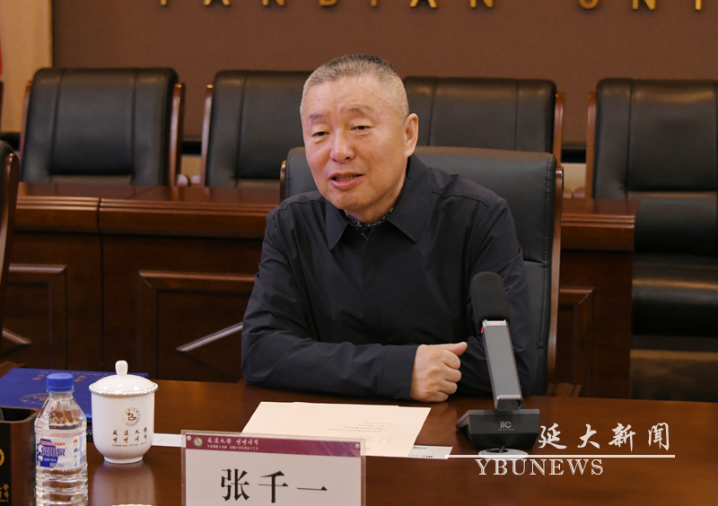 杜锐为张千一颁发聘任证书并讲话。他系统阐述了学校在教育固边、人才兴边、科技强边、产业富边、学术戍边、文化润边六个方面的使命与担当。杜锐强调,学校始终深入学习贯彻总体国家安全观,立足民族地区高校定位,致力于打造铸牢中华民族共同体意识的生动实践典范;同时,依托东北亚地区的地理区位优势,积极融入“一带一路”倡议,努力成为向北开放的“桥头堡”。他希望,张千一教授充分发挥其卓越的影响力和专业能力,在艺术创作、学术研究、人才培养模式创新、师资队伍建设和科研平台搭建等关键领域发挥引领作用,推动学校高质量发展,为边疆地区文化繁荣和加快建设教育强国作出更大贡献。
