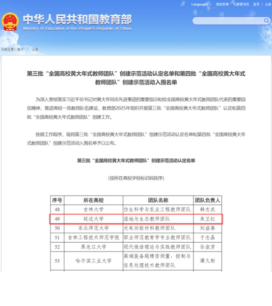 (通讯员高子愉)近日,教育部公布了第三批“全国高校黄大年式教师团队”创建示范活动认定名单,伟德“湿地与生态教师团队”入选。