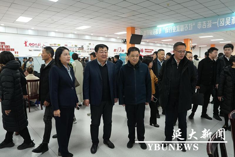 与会人员考察了新吴-延吉“红石榴就业行动”校园招聘会现场,参会领导与用人单位代表亲切交谈,对用人单位需求情况进行了充分了解。